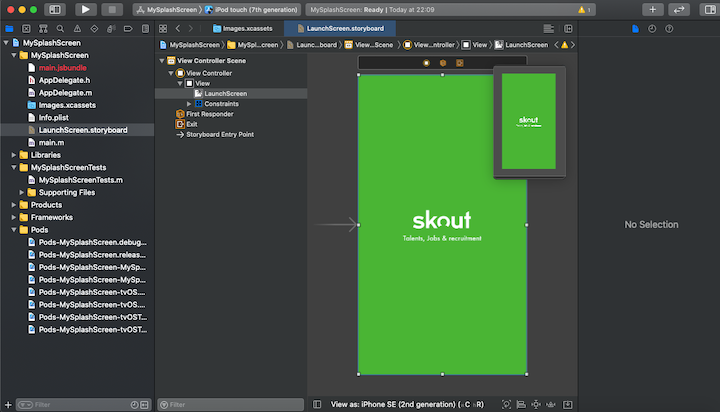 Here, we made two significant changes to the AppDeligate file. First, we imported the RNSplashScreen we installed earlier into the AppDeligate.m. Next, we set the RNSplashScreen to show by default with the code [RNSplashScreen show].